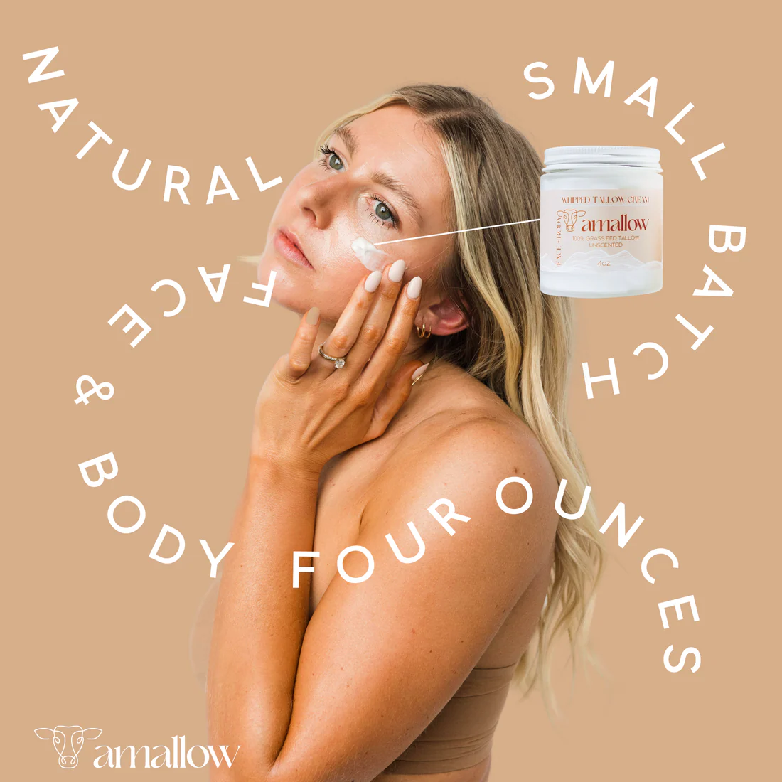 Handmade with care: Our tallow creams are made in small batches to ensure that every jar iscrafted with attention to detail.Organic almond oil: Almond oil's nourishing properties pair well with tallow, giving addedbenefits, and it won't clog your pores like olive oil.Whipped texture: Our whipped texture is superior to a balm for its lighter, easier-to-spreadtexture.Pure & organic essential oils: lncorporating organic essential oils into your skincare routineensures the use of pure and chemical-free ingredientsGrass-fed grass-finished tallow: Grass-fed, grass-finished tallow is richer in nutrient content,offering more effective skin benefits.